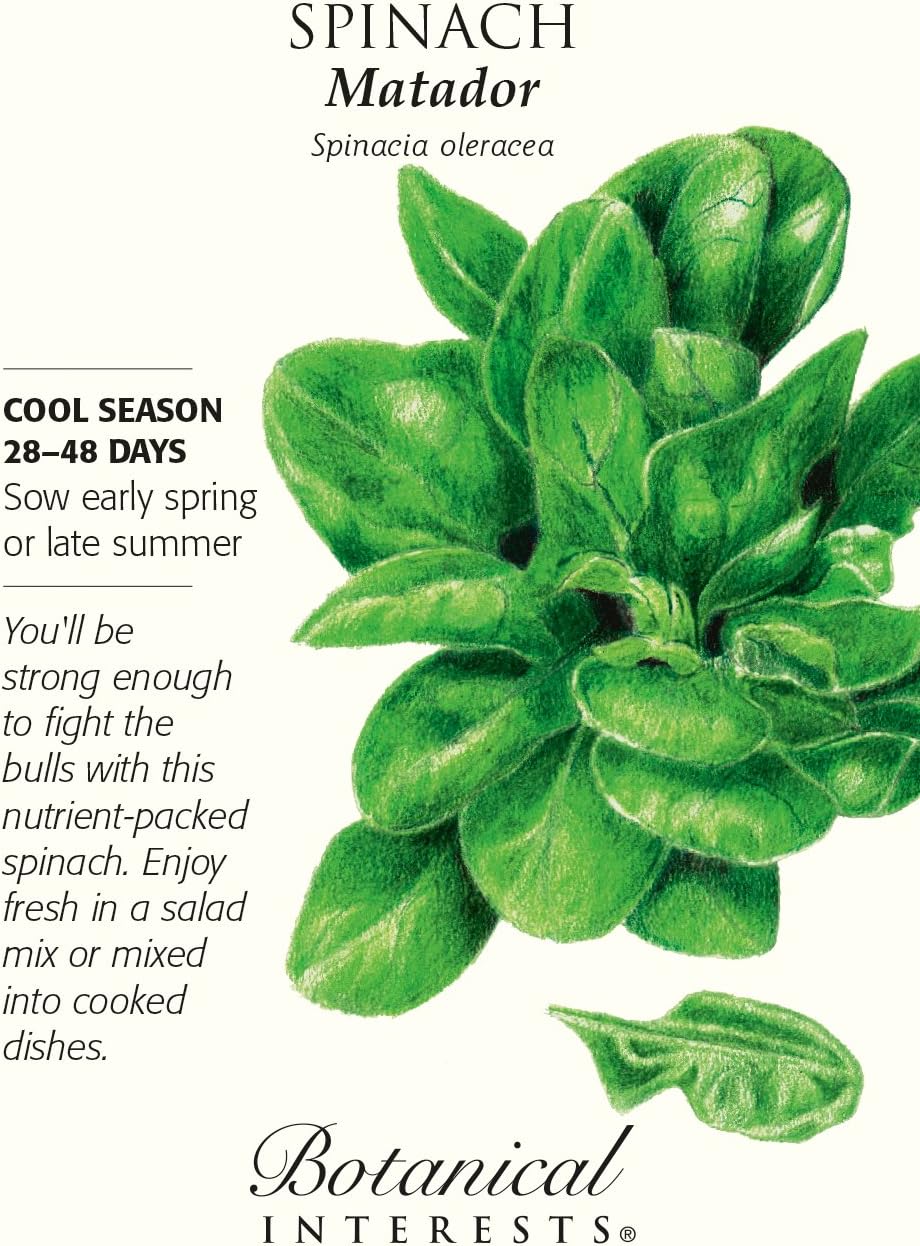 Grow fresh greens with Botanical Interests Matador Spinach Seeds, a reliable option for gardeners seeking high-quality leafy vegetables. These spinach seeds for planting produce smooth, dark green leaves with a mild, slightly sweet flavor. From planting to harvest, they offer a productive and rewarding growing experience for gardeners of all skill levels.
