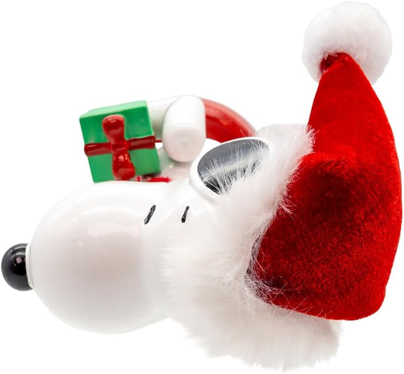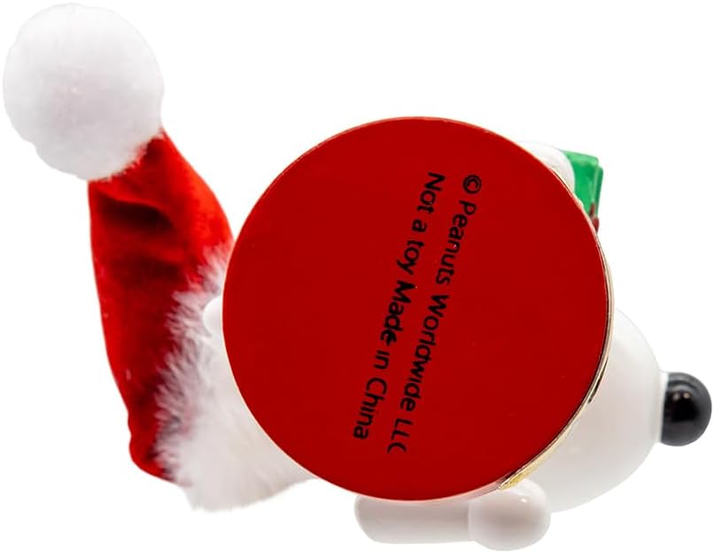 Standing 5 inches tall, Snoopy wears a bright red Santa hat and a cozy scarf while holding a wrapped Christmas gift. Each detail reflects his playful personality, adding charm and warmth to any holiday display. Whether on your mantel, shelf, or desk, this adorable piece brings instant smiles wherever it goes.
